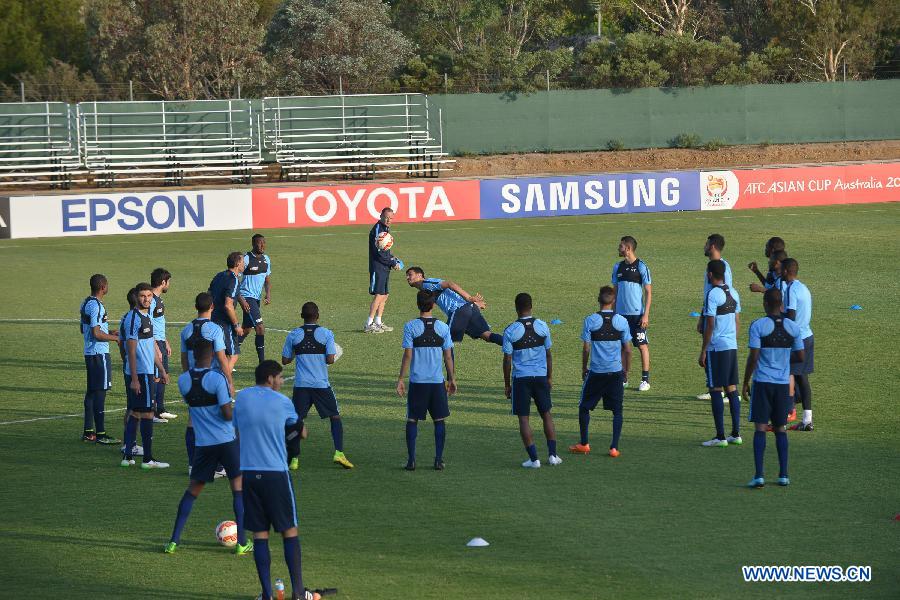 Players of Qatar soccer team attend a training session ahead of the AFC Asian Cup in Canberra, Australia, Jan. 7, 2015. (Xinhua/Justin Qian)