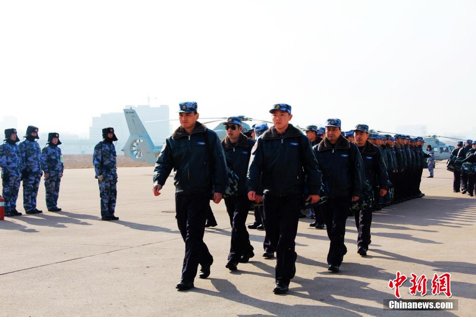 A regiment of the naval air force of the North Sea Fleet starts its first flight on Jan. 7, 2015 at an airport in east China's Shandong province. This regiment is the first carrier-based helicopter regiment in the history of the People's Liberation Army. It has successfully executed hundreds of significant tasks including scientific experiment, state visit, military drills and escort missions in the Gulf of Aden. (CNS/Hu Baoliang)