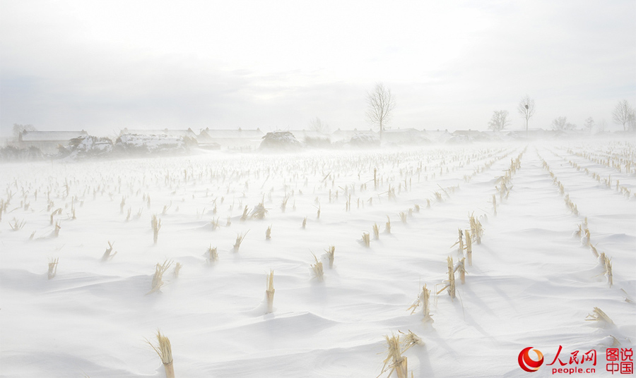 The photos show the spectacular weather phenomenon in Mishan, northeast China’s Heilongjiang province. It often happens in the third nine-day period after the winter solstice when snow is blown up into air by strong wind. The whole world is surrounded by the snow fog.(Photo source: people.cn)
