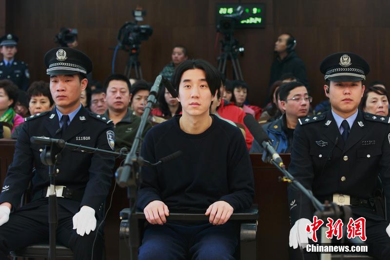 Jaycee Chan, stands trial on Friday for a drug-related crime at the Dongcheng District People's Court in Beijing, Jan. 9, 2015. Jaycee Chan, son of Chinese kung fu star Jackie Chan, was sentenced to six months in jail on Friday for drug offense at the Dongcheng District People's Court in Beijing. (Photo/CNS)