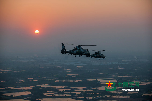 The photos show China's WZ-9 and WZ-1O attack helicopters. (Photo/81.cn)