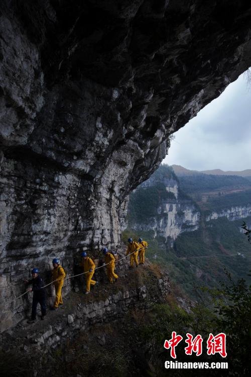 Steep mountains are the severest obstacles for line patrol. The workers have to walk on cliffs and get through jungles to finish work, just like Spiderman. (Chinanews/Deng Gang)
