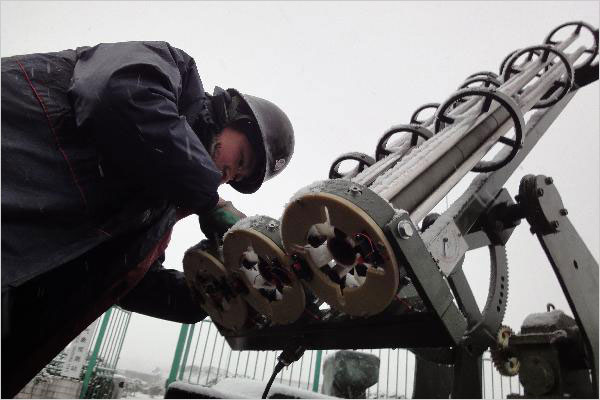 | A technician at the local meteorologic department prepares for artificial precipitation in Jiyuan, central China's Henan Province, Feb. 9, 2011. [File Photo: Xinhua] |
