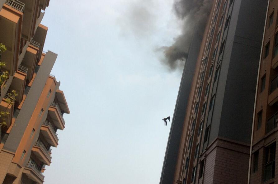 Two Chinese firefighters fall from a tall building when fighting a blaze. (Photo/Xinhua)