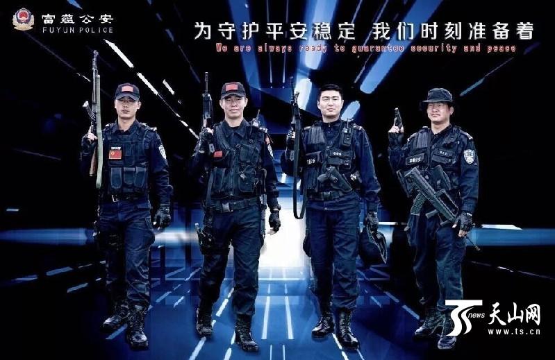 Police force of Fuyun county, northwest China’s Xinjiang Uygur Autonomous Region unveiled its publicity poster on Jan. 9, 2015. These movie-like posters soon become a hit online. (Photo source: Tianshannet)