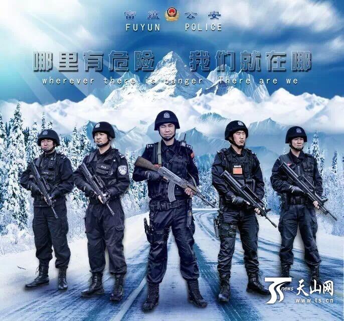 Police force of Fuyun county, northwest China’s Xinjiang Uygur Autonomous Region unveiled its publicity poster on Jan. 9, 2015. These movie-like posters soon become a hit online. (Photo source: Tianshannet)