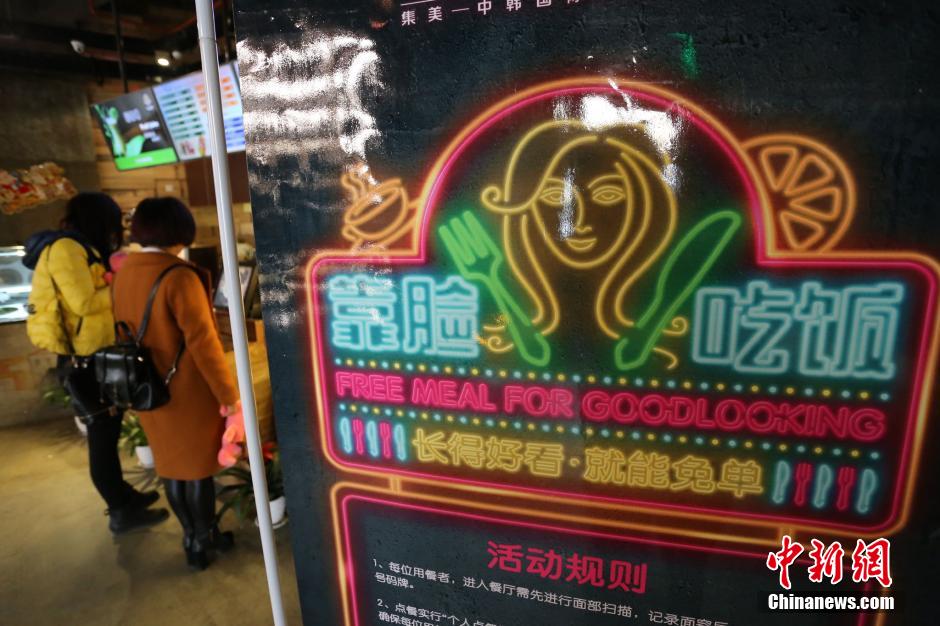 On Jan. 12, a restaurant holds a activity “eat free if you are beautiful enough”. Customers had their face scanned on a computer and orthopedic specialists would give scores to their appearances. The customers were grouped. The top five of each group would have their food for free. (Photo/Chinanews.com)