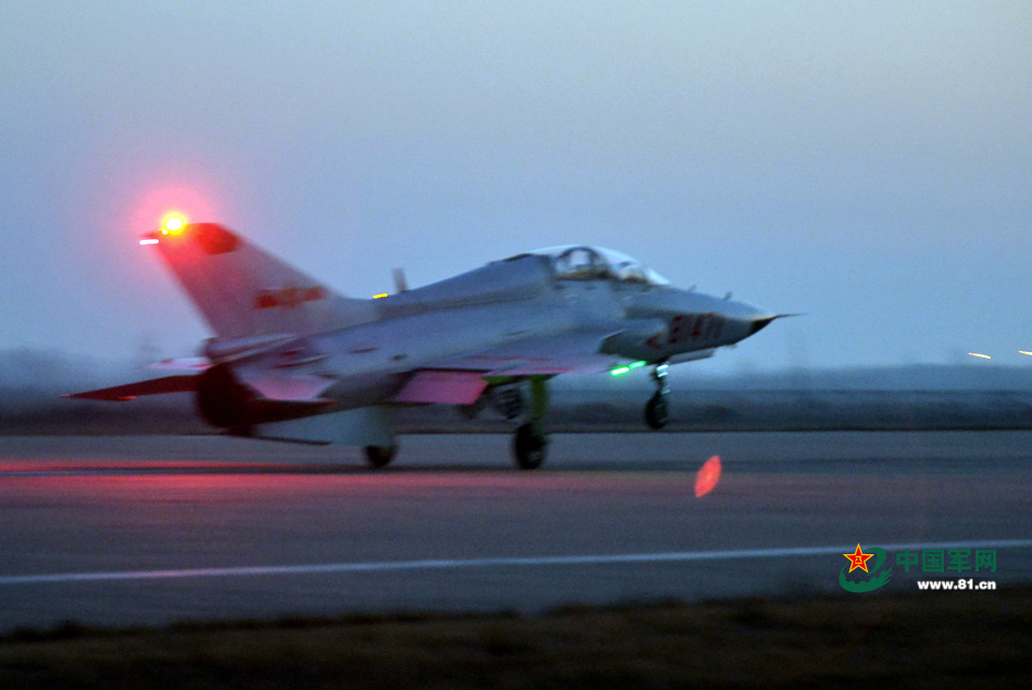 The air force of China’s North Sea Fleet conducts actual combat training on Jan. 9, 2015. As the first subject, the night flight training was a complete success. (Photo source: www.81.cn)