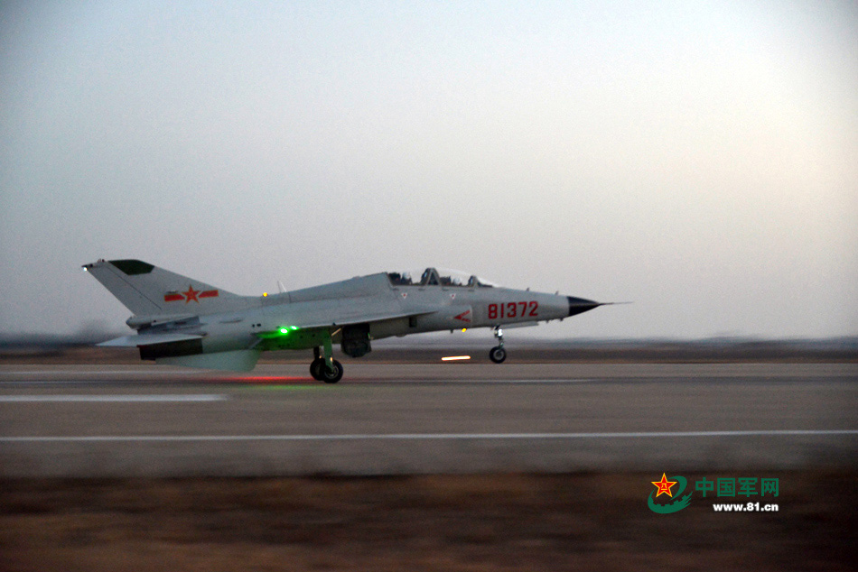 The air force of China’s North Sea Fleet conducts actual combat training on Jan. 9, 2015. As the first subject, the night flight training was a complete success. (Photo source: www.81.cn)