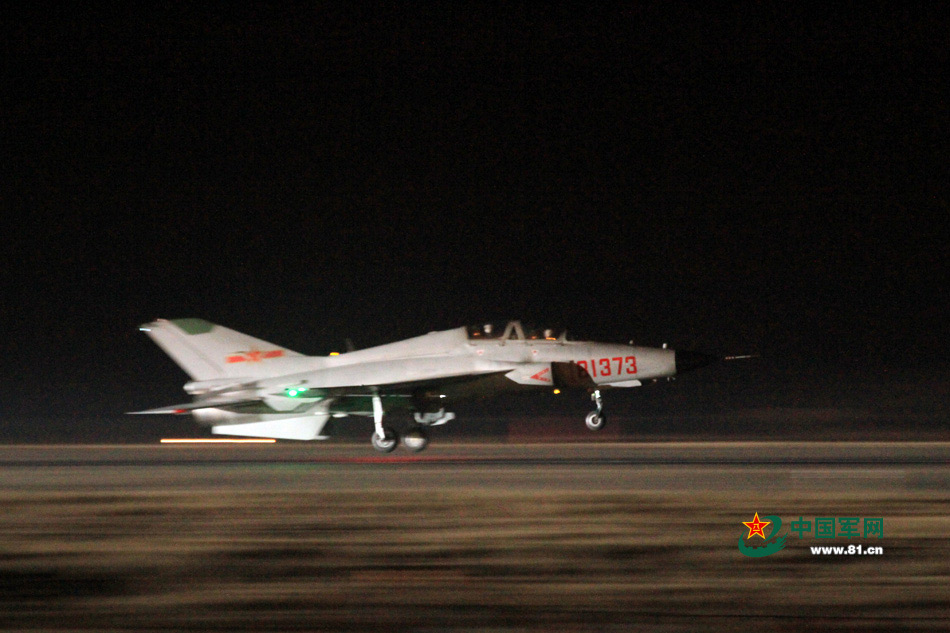 The air force of China’s North Sea Fleet conducts actual combat training on Jan. 9, 2015. As the first subject, the night flight training was a complete success. (Photo source: www.81.cn)