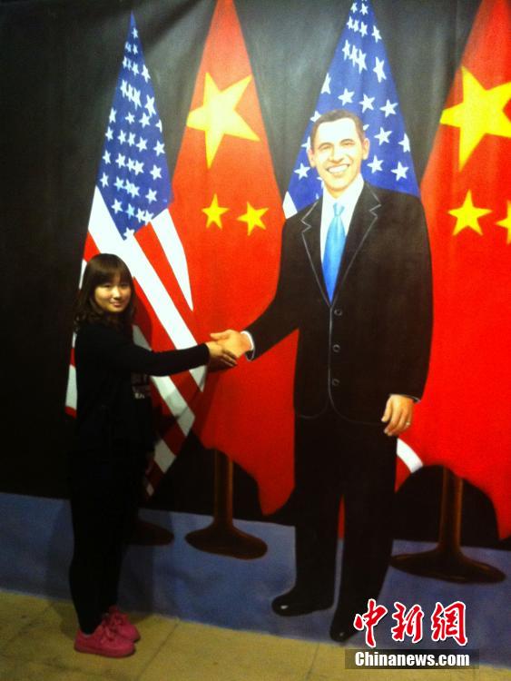 A girl shakes President Obama's hand. (Chinanews/Zhai Yujia)