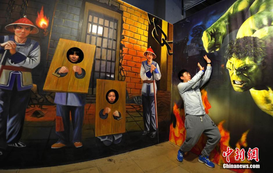 A lot of young people were attracted to the new 3D art gallery in Shijiazhuang on Jan. 13, 2015. Hundreds of different 3D experiences presented visitors with a thrilled and unforgettable journey