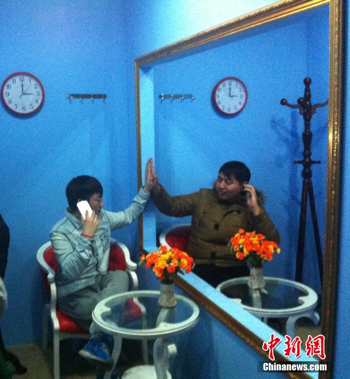 People sits in front of a mirror that can show their "previous life". (Chinanews/Zhai Yujia)