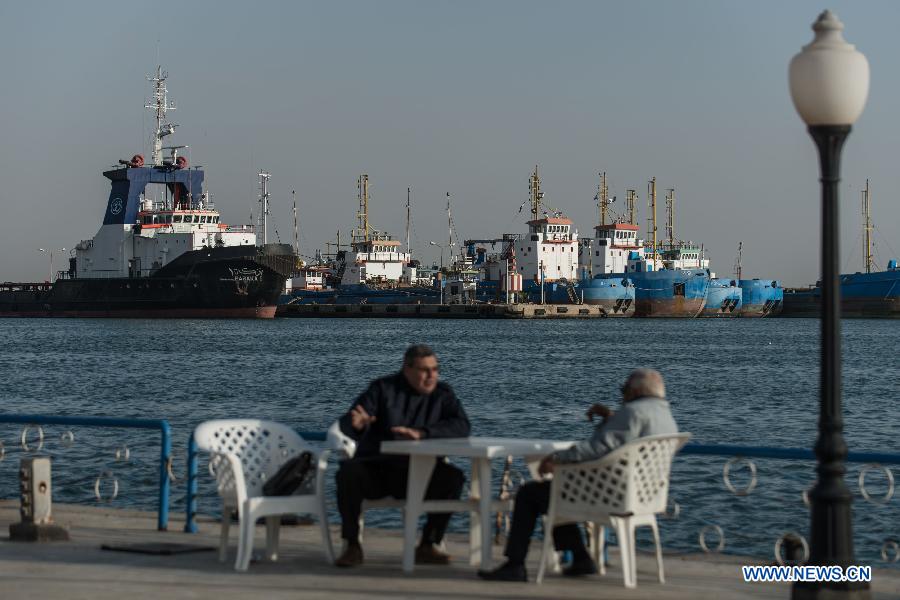 | Ships are seen at a port in Ismailia, a city by the Suez Canal in Egypt, on Jan. 14, 2015. Egypt launched the new waterway project in August 2014, and the construction was ordered by Egyptian President Abdel-Fattah al-Sisi to be completed in one year. (Xinhua/Pan Chaoyue) |