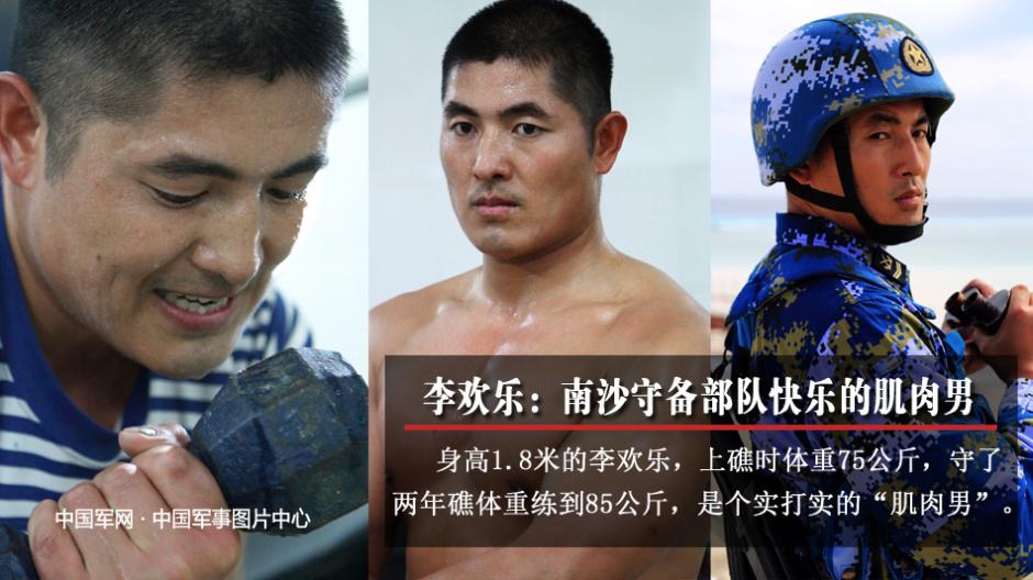 Li Huanle, 1.8 meters tall, is a soldier of the Nansha garrison. He became a muscular man after two years' training on the Nansha Islands. (Photo/81.cn)
