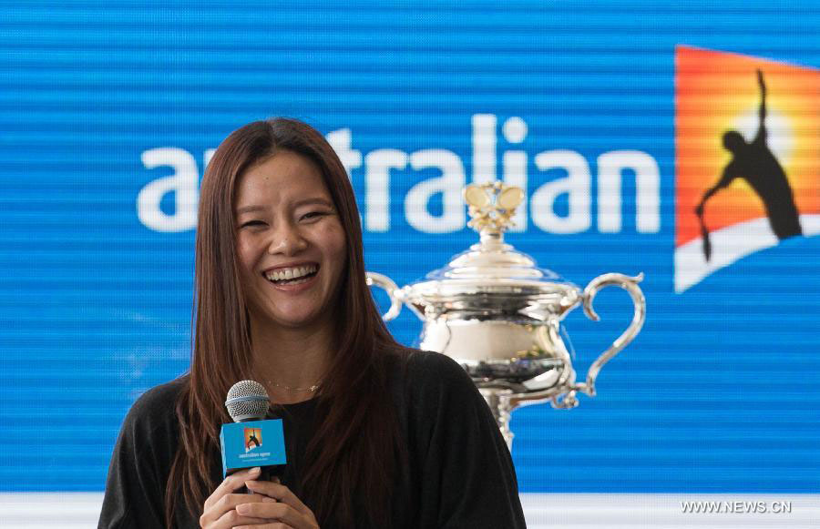 Former Chinese tennis player Li Na attends the official draw ceremony of 2015 Australian Open tennis tournament at Melbourne Park in Melbourne, Australia, Jan. 16, 2015. (Xinhua/Bai Xue)