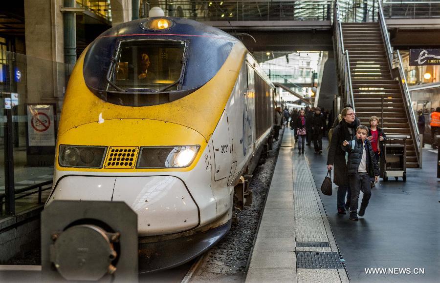 Passengers get off a Eurostar train that reversed from the Channel Tunnel due to a fire alarm at the Gare du Nord train station in Paris, France, Jan. 17, 2015. All services of Eurostar were suspended Saturday due to smoke detection in the Channel Tunnel, Eurostar announced Saturday. All trains were returning to original stations as the Channel Tunnel linking Britain and France was closed until further notice, Eurostar's customer care team said on its Twitter account. (Xinhua/Chen Xiaowei)