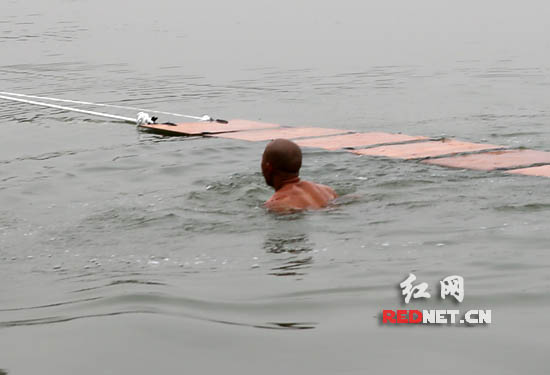 | Shi Liliang, falls in water in the first challenge. (Photo/Rednet.cn) |