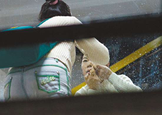 1:37 a.m., Dec. 25, 2014 - A girl takes a rest in the hallway. (Photo/China Youth Daily)