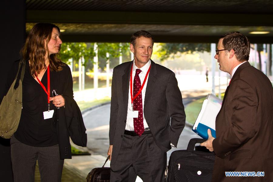 Delegations from the United States arrive at the Conventions Palace of Havana in Havana, Cuba, Jan. 21, 2015. Cuba and the United States began historic high-level Jan. 21-22 talks on restoring relations and immigration issues on Wednesday. (Xinhua/Liu Bin)