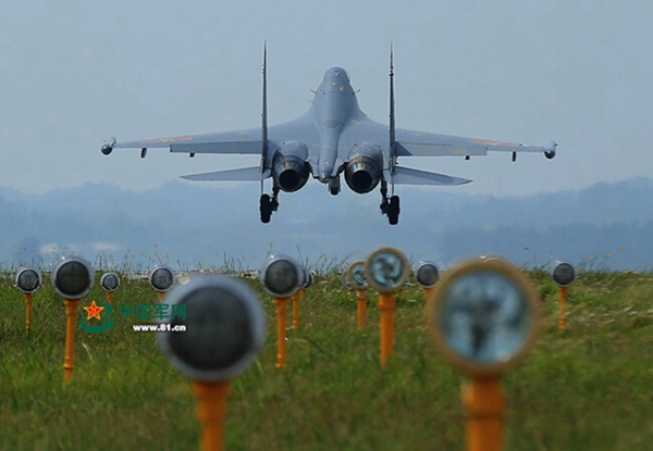 | PLA air force trains its pilots in drills using unplanned scenarios in order to strengthen aviators’ combat readiness. (Photo/ Liu Yinhua) |