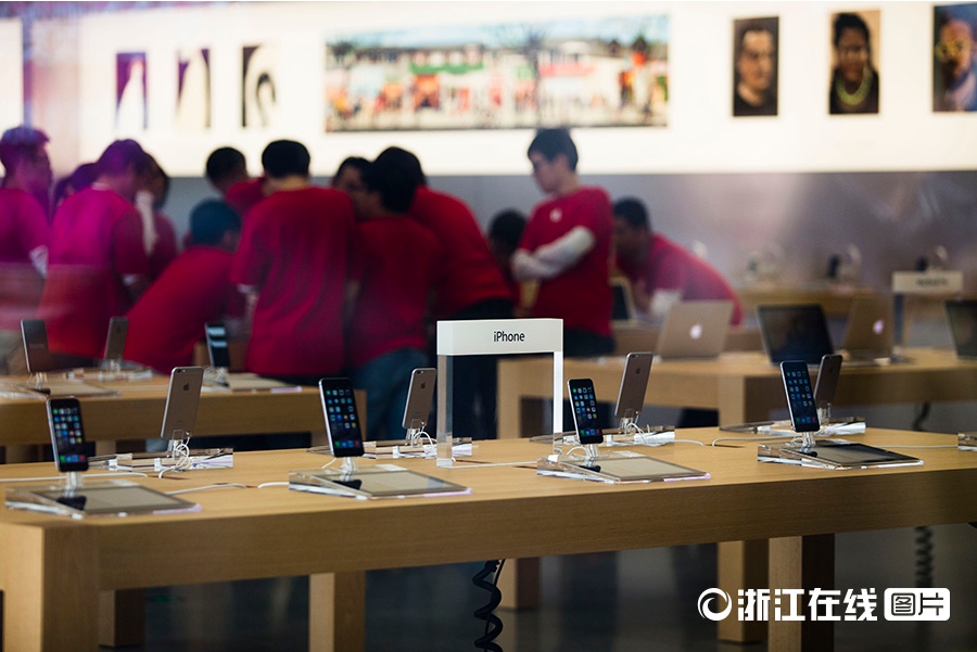 The apple store in Hangzhou, which will soon become the biggest apple store in Asia, is finally unveiled to the public on Jan. 20, 2015. Its special decoration has attracted a lot of people. The store will officially open on Jan. 24. (Zhejiang Online/Tong Xiaolei)