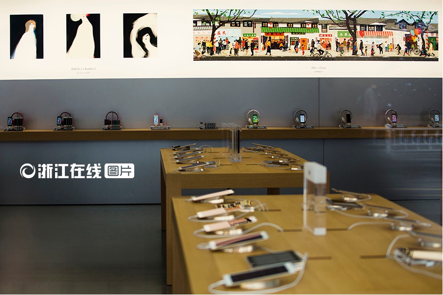 The apple store in Hangzhou, which will soon become the biggest apple store in Asia, is finally unveiled to the public on Jan. 20, 2015. Its special decoration has attracted a lot of people. The store will officially open on Jan. 24. (Zhejiang Online/Tong Xiaolei)
