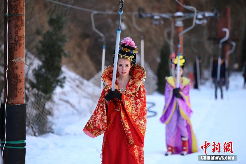 Cosplay! Chinese and foreign beauties ski in ancient costumes (10)