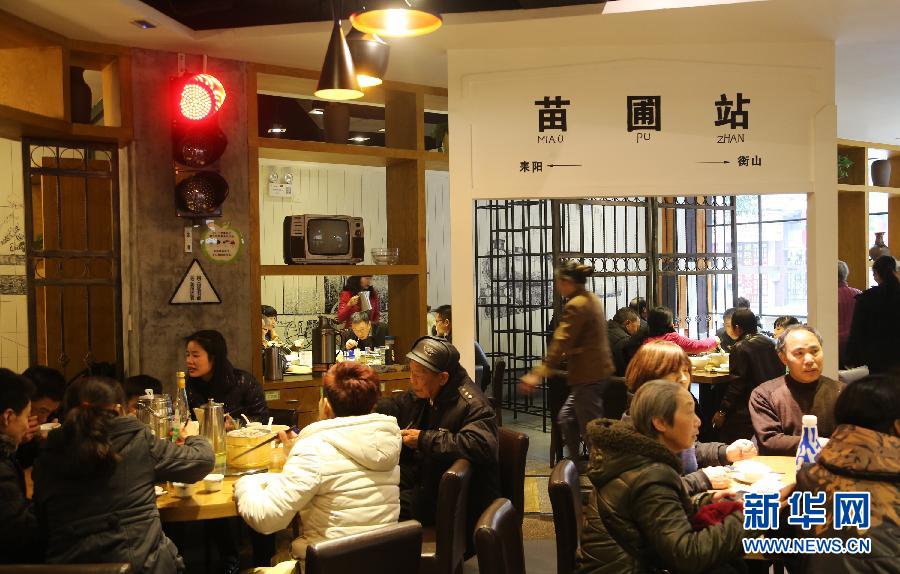 | Customers dine in an old-railway-themed restaurant in Hengyang, central China's Hunan province, on Jan. 20, 2015. (Xinhua/Cao Zhengping) |