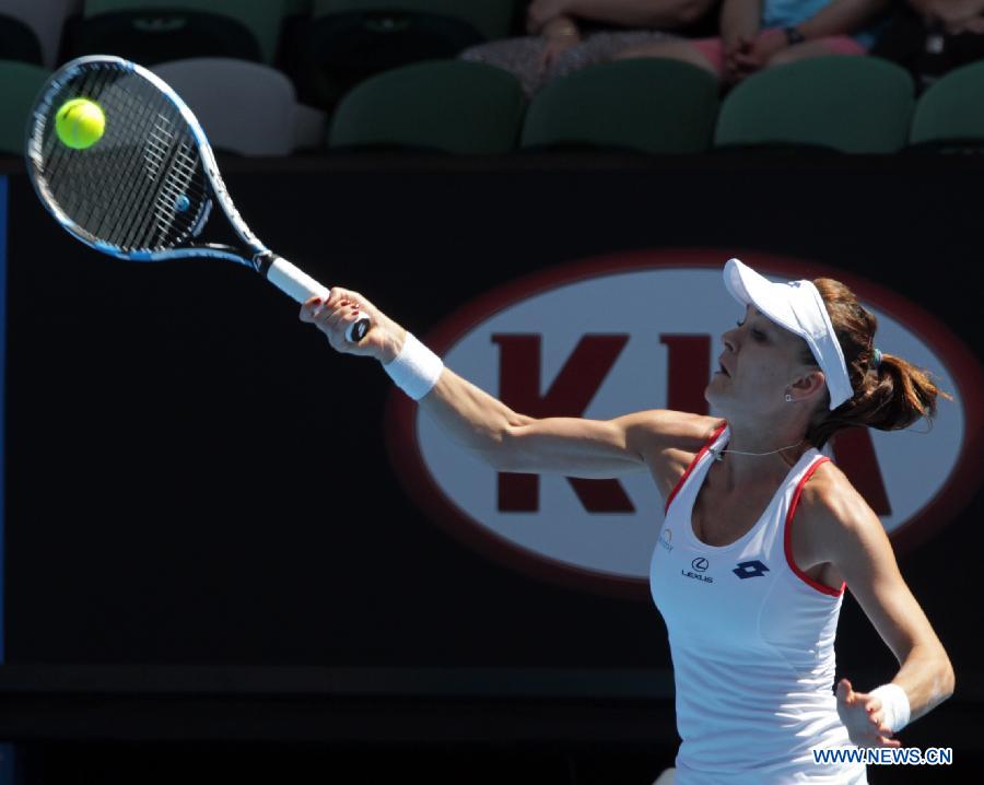 Agnieszka Radwanska of Poland returns the ball against Varvara Lepchenko of the United States during the third round of the women's singles on Day 6 of the 2015 Australian Open tennis tournament in Melbourne on Jan. 24, 2015. Agnieszka Radwanska won 6-0 7-5. (Xinhua/Jin Linpeng)