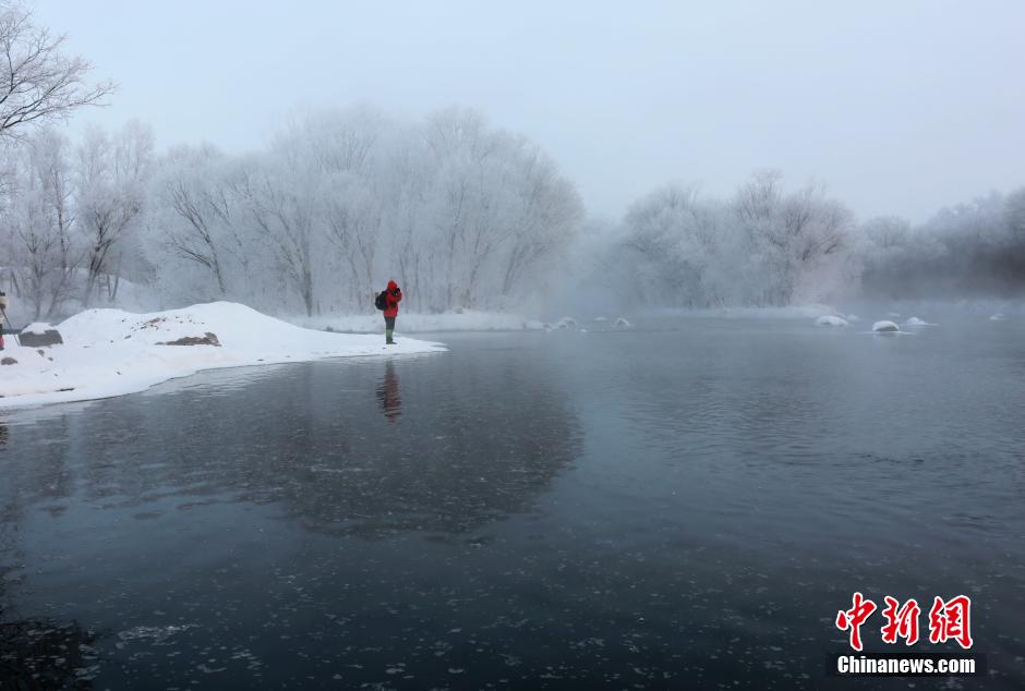 Photo shows the beautiful rime scenery in Xunke county of Heihe, northeast China's Heilongjiang province, Jan. 21, 2015. The dreamlike scenery stretches several kilometers, attracting flocks of tourist and photographers. (CNS/Liu Song)