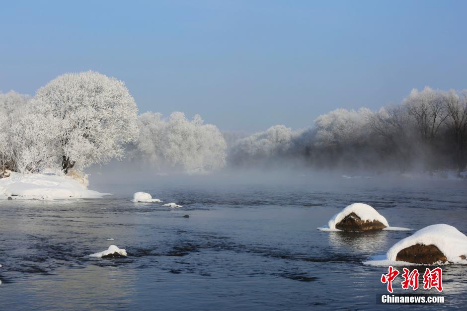 Photo shows the beautiful rime scenery in Xunke county of Heihe, northeast China's Heilongjiang province, Jan. 21, 2015. The dreamlike scenery stretches several kilometers, attracting flocks of tourist and photographers. (CNS/Liu Song)