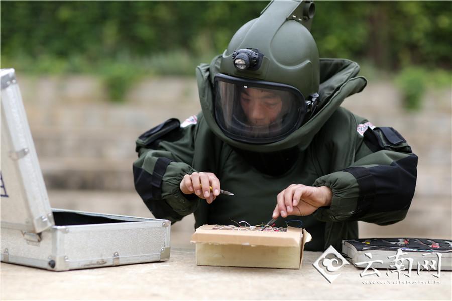 Bomb disposal is a dangerous job. Bomb diffusers have to make quick decisions to dispose bombs by themselves. The bomb diffusers of Yunnan’s Armed Force are quick minded and calm. They have gone through a series of strict trainings. (Photo/Yunnan.cn)