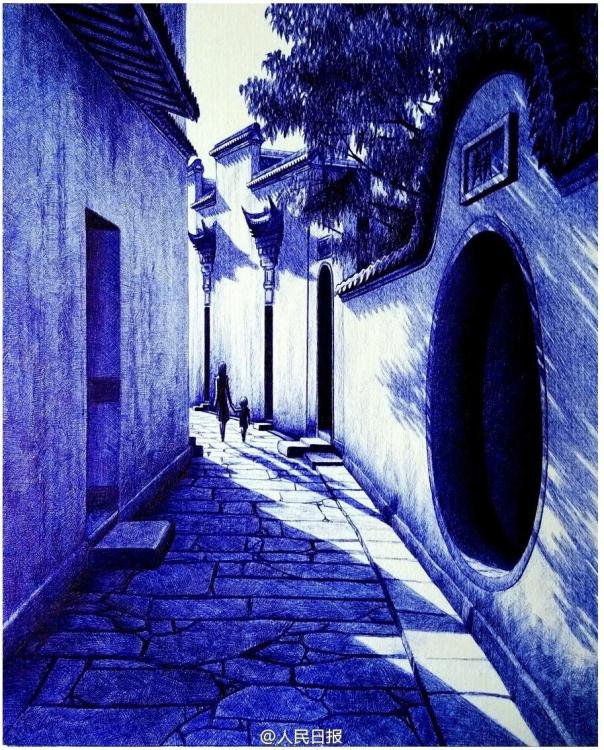 Can you tell? These are all ball pen paintings! A group of ball pen paintings has gone viral online. Many netizens have expressed their admiration for the skillful painter. (Photo/Weibo of People's Daily Online)