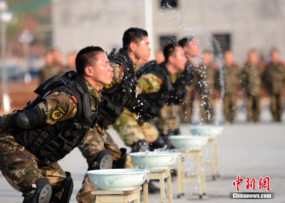 Soldiers from a special detachment of the Armed Police Force in Hunan train on Jan. 21, 2015. (Photo/CNS)