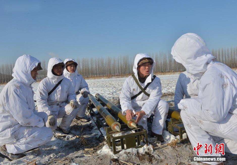 In the severe cold of minus 34 degrees Celsius, a brigade of the 16th Group Army conducts field training in northeast China on Jan. 27, 2015, so as to improve the combat ability of soldiers in severe weather. (Chinanews/Yang Zaixin)