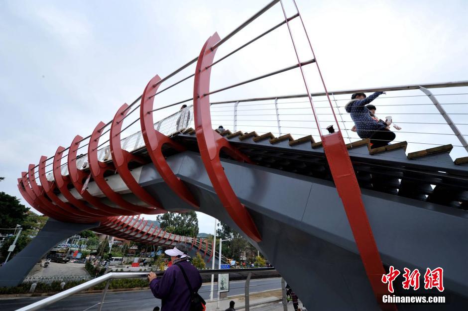 In the shape of fish bones, the most artistic overbridge in Xiamen is put into use on Jan. 28, 2015. Xiamen is famous for its fishing industry. That is the reason why the overbridge was designed in the shape of a fish with only bones. (Chinanews/Zhang Bin)