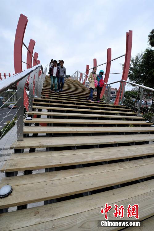 In the shape of fish bones, the most artistic overbridge in Xiamen is put into use on Jan. 28, 2015. Xiamen is famous for its fishing industry. That is the reason why the overbridge was designed in the shape of a fish with only bones. (Chinanews/Zhang Bin)