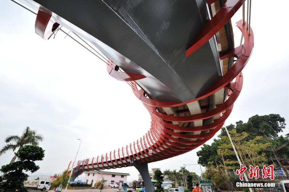 In the shape of fish bones, the most artistic overbridge in Xiamen is put into use on Jan. 28, 2015. Xiamen is famous for its fishing industry. That is the reason why the overbridge was designed in the shape of a fish with only bones. (Chinanews/Zhang Bin)