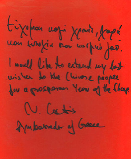 BEIJING, January 30 (People's Daily Online) China's Spring Festival is just around the corner. Greek Ambassador H.E Mr. Vassilios Costis extends wishes to the Chinese people as follows.