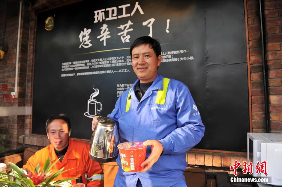 Restaurant in Fuzhou sets up rest room for sanitation workers (3)