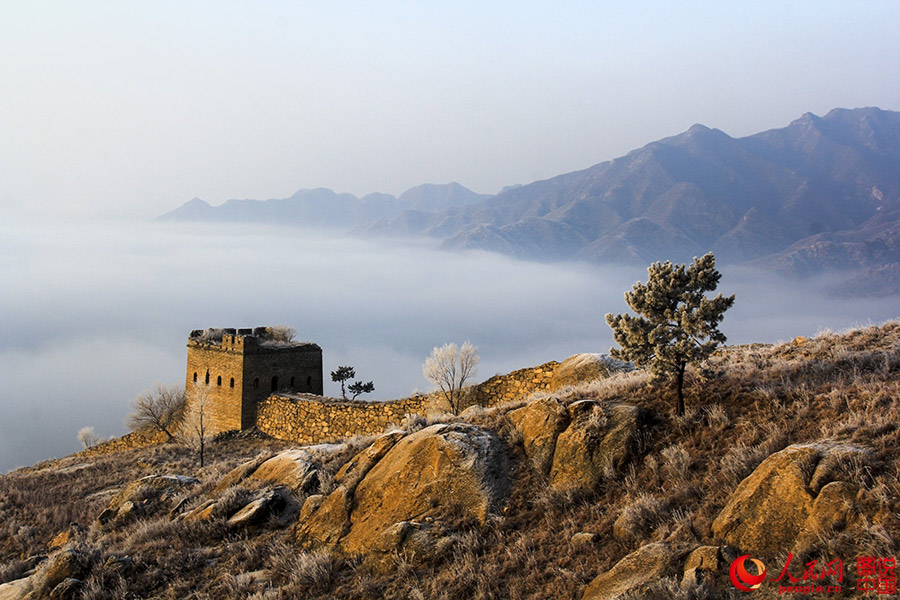 Located in north China’s Hebei province, the Tianqiao Great Wall was built in Ming Dynasty (1368-1644). In winter, the sea of clouds adds more charm to its magnificent landscape. (Photo source: people.cn)