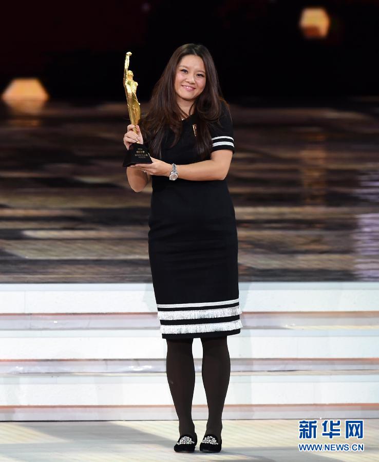 Tennis player Li Na poses at the awarding ceremony of the 2014 Sports Personality of the Year after she was awarded the Best Female Athlete of the year, in Beijing, capital of China, on Feb. 1, 2015. (Source: Xinhuanet.com)