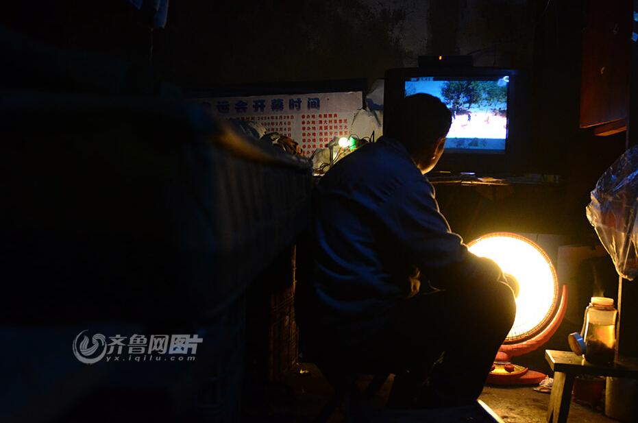 The dormitory of the coal workers is shabby. For sake of safety, the workers cannot use coal stoves in the room. Watching television is their only recreation. (Photo/Iqilu.com)