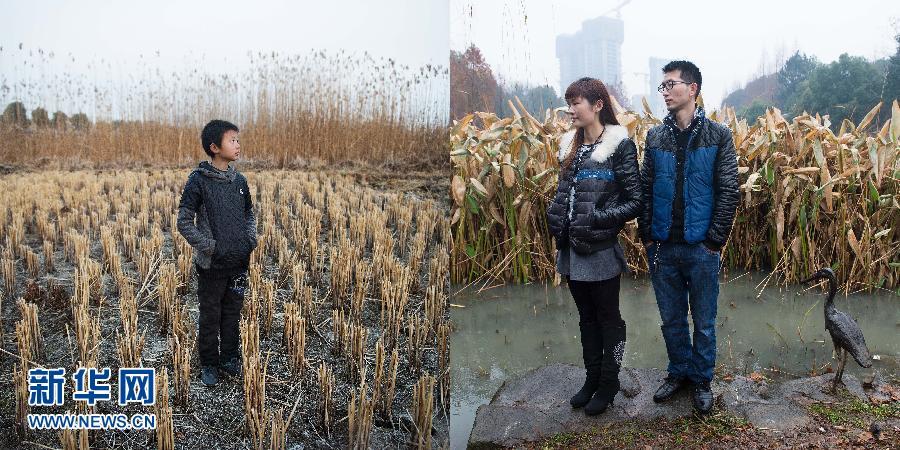 A left-behind boy stands in field while his parents in a park in a big city.(Xinhua/Liu Jie)