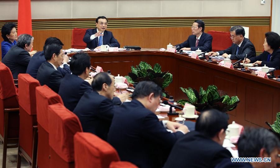 Chinese Premier Li Keqiang presides over a symposium to solicit opinions from members of China's non-Communist parties, representatives of industry and commerce federations and personages without party affiliation on the draft of an annual government work report in Beijing, capital of China. (Xinhua/Yao Dawei)