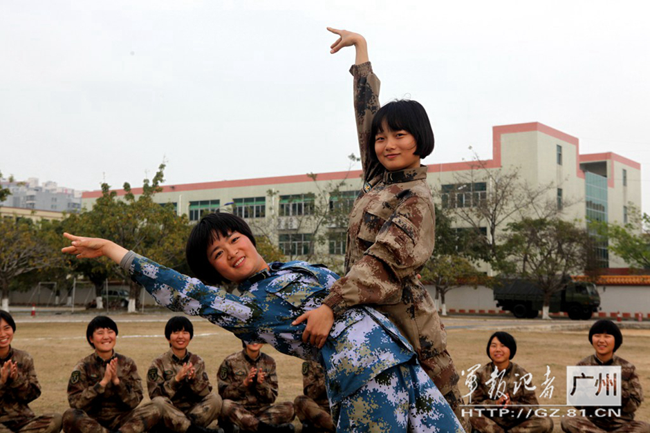 Two soldiers dance during the training break. (Photo/81.cn)