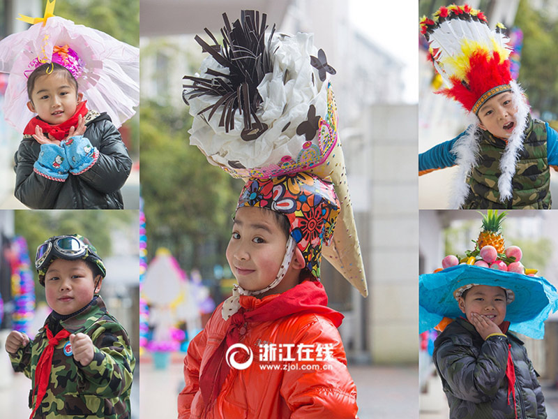 Students of Hangzhou Tianhang Experimental Primary School in east China’s Zhejiang province hold an interesting hat party on Feb. 3, 2015. The final exams for junior grades have been canceled for three years. Instead, all kinds of activities are held to inspire children’s innovative thinking. Their hats are made from newspapers, milk boxes, playing cards, plasticines and many other materials. (Photo source:zjol.com.cn)