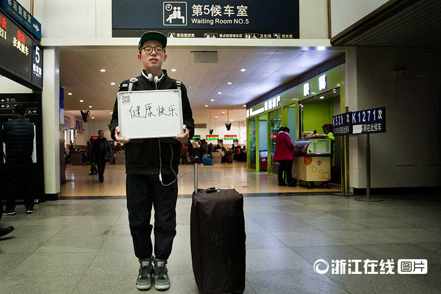 Our reporters carried out a series of random interviews with travelers, seeking to know their wishes for the New Year in the Hangzhou Railway Station on the first day of the Spring Festival travel rush.