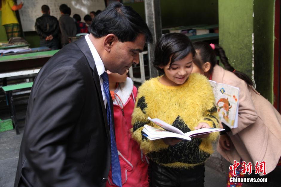 A Myanmar student reads Chinese poem in the presence of Peng Jue.(Chinanews.com/Yang Haorong)